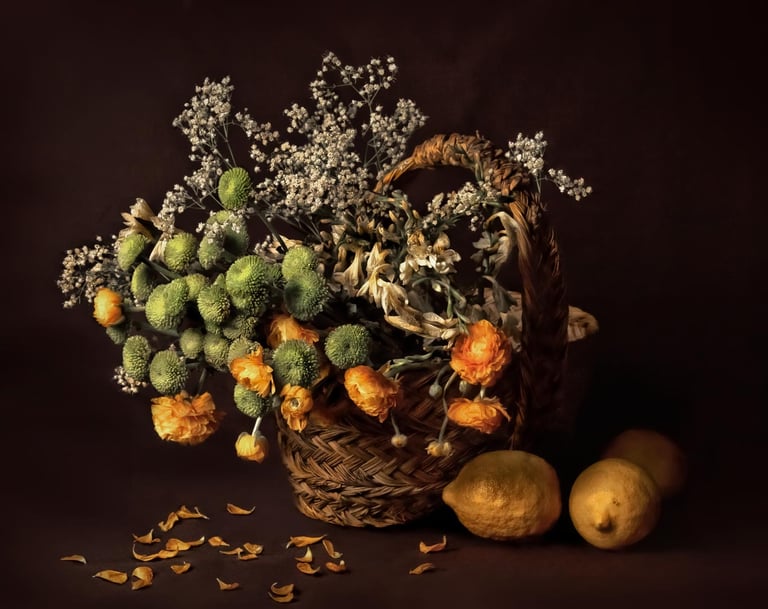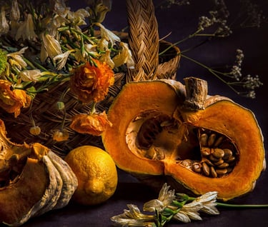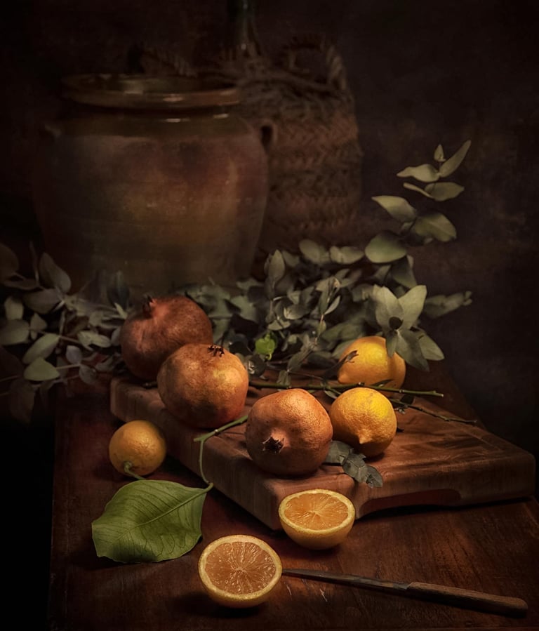 La serie fotográfica "Barroca", la inicio en el año 2017, emerge como un tributo a la estética pictórica de los bodegones del barroco español y en especial a los de Luis Meléndez. En esta serie de fotografía artística, trato de sumergir al espectador en un universo visual donde la luz y la sombra, tan característica del barroco, se funden y danzan en perfecta armonía, creando una atmósfera de misterio y sofisticación.