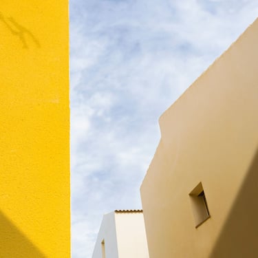 Reconozco que me llega a fascinar realizar encuadres con sombras duras, creando una unidad visual casi abstractas: así nació la serie “La geometría de las sombras”. Por alguna razón me atrae la geometría de las construcciones como elemento plástico; la fuerza del color en las fachadas, en contraste con el cielo azul mediterráneo.